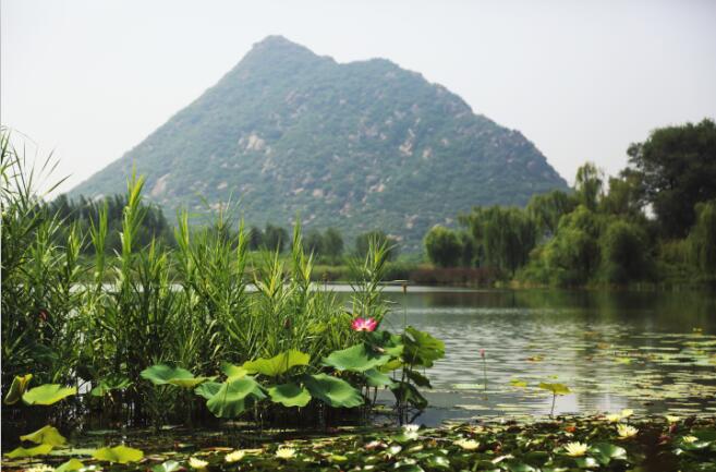 濟南華山又名華不(fū)注山,其名取自于《詩經·小雅·常棣》,其詩曰:“常(棠)棣之華,鄂不??”。“華”即“花”,“鄂不”即“萼跗”,謂之花蒂。山名“華不注”,意為此山如花跗注于水中。經過緊張的恢復整治,目前,“華不注”的山水勝景初現,“水中起芙蓉”的旖旎景觀又一次展現在世人面前。