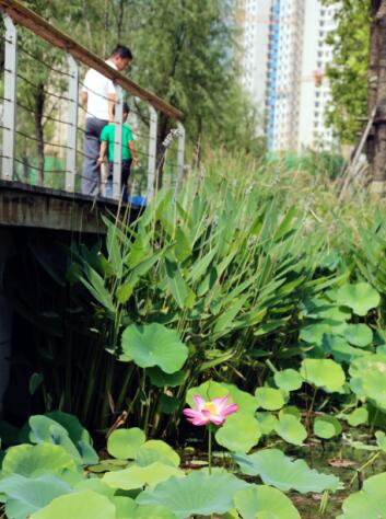 濕地園林一期景觀栽種了100多種植物,有旱柳、國槐等濟南本地樹種,還有荷花、蘆葦等20多種水生植物,良好的生態環境吸引了不少白鷺、??等鳥類棲息,“棹動芙蓉落,船移白鷺飛”。