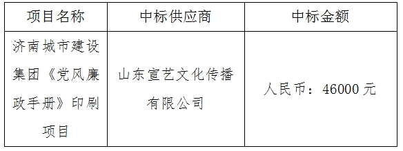 濟南城市建設集團《黨風廉政手冊》印刷項目中標公示