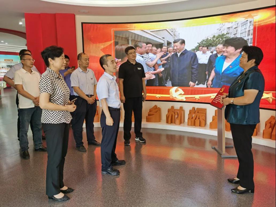 在三澗溪村,工作人員帶領(lǐng)大家重走習(xí)近平總書記的考察足跡。在村委會黨群服務(wù)中心,深入了解了三澗溪村的成長史、黨組織的發(fā)展歷程、黨組織建設(shè)經(jīng)驗和先進(jìn)做法,以及“四鄰聯(lián)動”等為民服務(wù)體系。在鄉(xiāng)村振興主題展館,工作人員為大家講解了習(xí)近平總書記親臨三澗溪村視察指導(dǎo)的有關(guān)情形,并結(jié)合實物、圖片、視頻、展板等載體講述了三澗溪黨委不忘初心,牢記使命,擔(dān)當(dāng)作為,團(tuán)結(jié)帶領(lǐng)村民脫貧致富的奮斗歷程。期間,工作組與三澗溪村黨委書記高淑貞就黨建引領(lǐng)、鄉(xiāng)村振興等方面進(jìn)行了暢談交流,參觀結(jié)束,全體人員在黨旗前重溫了入黨誓詞。