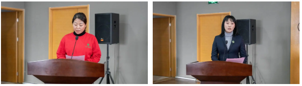 會(huì)議中,優(yōu)秀部門(mén)代表郭峰、員工代表王麗娟及金齡之星代表朱秋彤作表態(tài)發(fā)言。