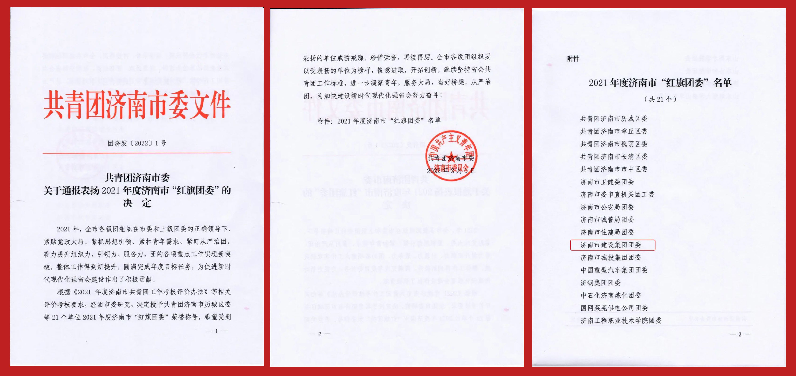 【建設青春】濟南城市建設集團團委榮獲2021年度濟南市“紅旗團委”稱號