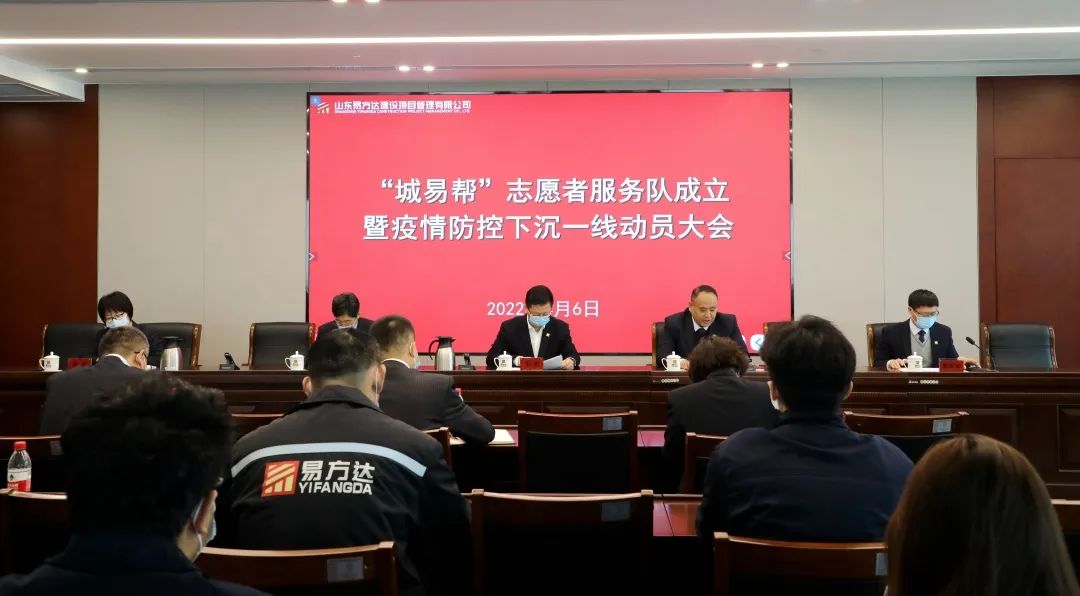 按照市委、市政府指示精神和建設集團統一部署,4月6日,易方達公司召開“城易幫”志愿者服務隊成立暨疫情防控下沉一線動員大會,安排部署疫情防控志愿者服務隊再赴濟陽區開展下沉社區排查隨訪工作。公司領導班子成員、全體志愿者參加會議。本次會議嚴格按照防疫要求,參會人員在會議室中保持1米以上間距就座,避免密切接觸。