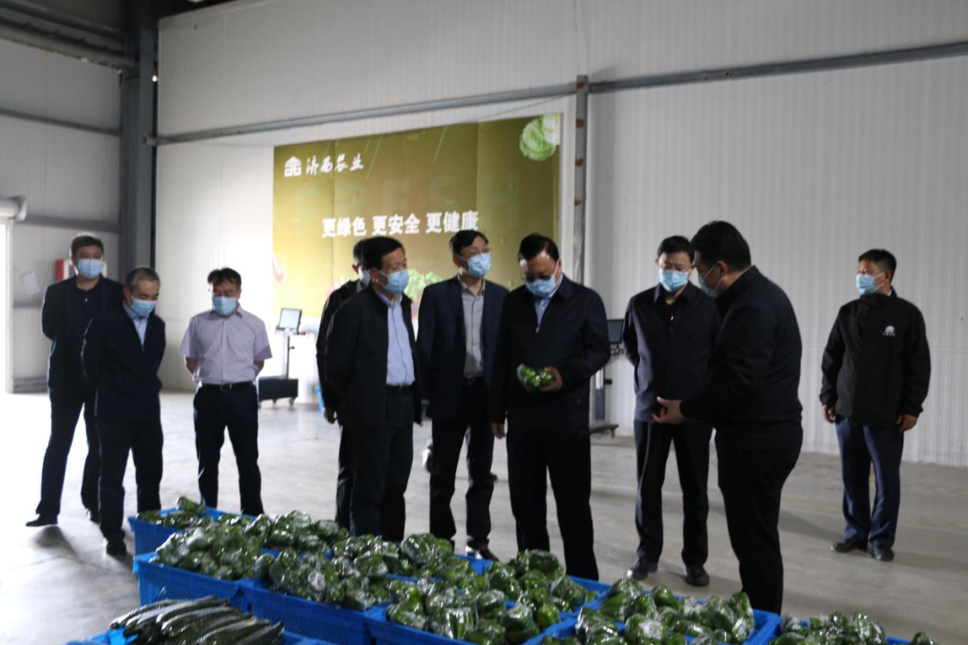 考察組先后前往濟西園區、高科園區,圍繞濟西農業種養殖生產、園區特色項目打造、農產品質量控制、蔬菜分揀配送等工作進行實地考察,詳細了解了疫情防控期間濟西農業蔬菜保供情況。