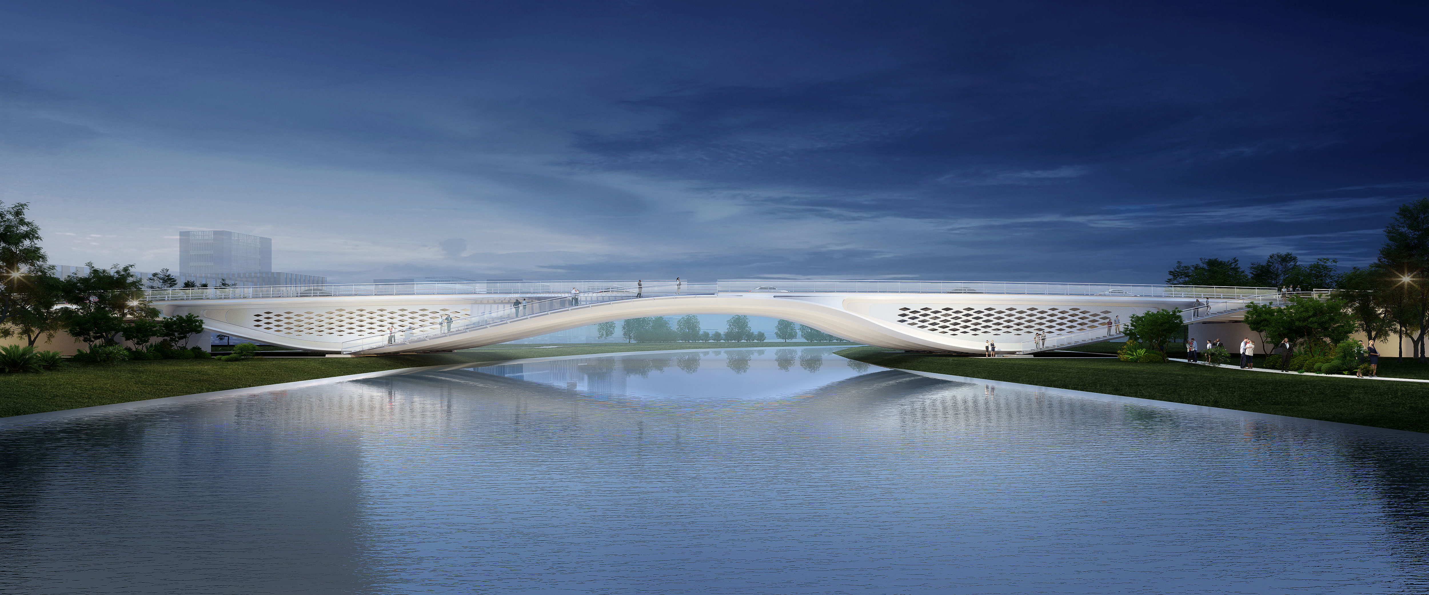 橫一路、橫二路大寺河橋作為起步區(qū)規(guī)劃的第一批景觀橋梁,由濟(jì)南城市建設(shè)集團(tuán)有限公司受委托建設(shè),兩座橋梁由世界著名橋梁設(shè)計(jì)師Marc MIMRAM先生主設(shè)計(jì),通過研究濟(jì)南的歷史和文化,以泉與太極這個(gè)設(shè)計(jì)為根基,將泉城的剛中有柔、柔中帶剛,與太極互為印證,力與美相結(jié)合,完成兩座景觀橋梁的設(shè)計(jì)。