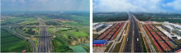 改擴建項目堅持問題導向、創先導向,立足項目實際,總結五大工程特難點,突出“綠色”和“科技”主題,圍繞全壽命周期設計施工一體化技術、不間斷交通的施工交通組織與安全保障提升技術、舊路材料與大宗工業廢棄物循環利用技術、生態防護與節能減排技術、信息化建管養效率提升技術等五大科技專項,開展了29個科技子項的科技攻關及推廣工作。打造了全國首條高速公路改擴建綠色科技示范工程,解決了新舊路基差異沉降問題,化解了山東重化污染頑疾,打造了世界第一條“赤泥”路,以“零廢棄”為目標,國內首次實現路面銑刨料、廢棄混凝土100%再利用、舊護欄60%再利用,全線瀝青路面采用單機18.75米全幅攤鋪,創造了同類工程領域的世界紀錄,取得顯著的經濟效益。此外,項目成功打造出國內首個實現自我中和的“零碳服務區”,國內首次嘗試不中斷交通下的雙向四車道保通,既有橋梁利用率高,實現既有結構物最大化利用,智慧化建設成果顯著,實現道路運營信息化、數字化以及智慧運營、智慧決策、智慧服務。