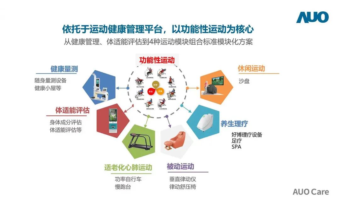 康養小鎮中心包含運動健康中心、體驗中心、多功能廳、親子樂園、餐廳五大功能區,結合醫養、康養、智養、學養、樂養、享養六大特色服務,提供全方位的康養旅居服務。