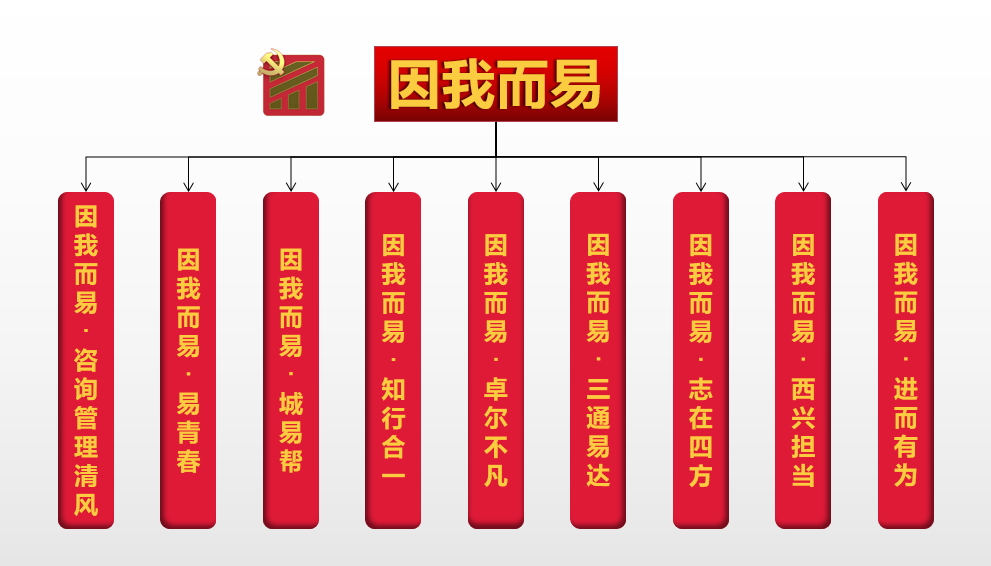 近年來,易方達(dá)公司按照建設(shè)集團(tuán)黨委“1+N+n”品牌創(chuàng)建總體布局,把黨建品牌與企業(yè)文化,項目管理、監(jiān)理、全過程工程咨詢主業(yè),行業(yè)數(shù)字化轉(zhuǎn)型等深度融合,形成“因我而易”黨建品牌為“1”,以點(diǎn)帶面,充分發(fā)揮自身優(yōu)勢,集中力量,挖掘資源,先后培育出“因我而易·咨詢管理清風(fēng)”廉潔文化品牌,“因我而易·易青春”團(tuán)委品牌,“因我而易·城易幫”“因我而易·志在四方”等支部品牌,形成亮點(diǎn)紛呈、百花齊放的“1+9”的黨建品牌矩陣。