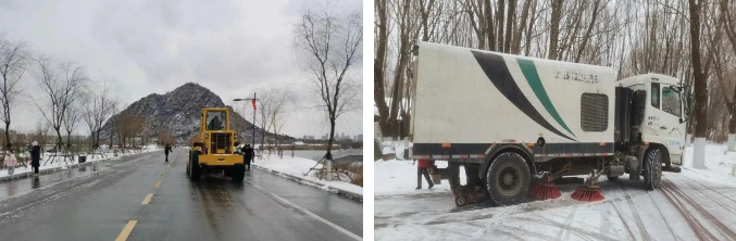 各景區(qū)投入多臺(tái)大型道路清掃機(jī)械,按照區(qū)域職責(zé)劃分,快速對(duì)景區(qū)主干道路積雪進(jìn)行了清除,確保道路整潔、暢通,二級(jí)道路使用小型清掃車、人工清掃等進(jìn)行了及時(shí)清理。大家頂風(fēng)冒雪、齊心協(xié)力、熱情高漲的除雪場景,也成為美麗雪景中的一道勞動(dòng)風(fēng)景線。