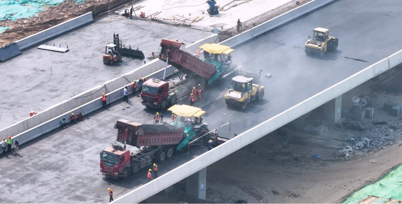 主進場路工程涉及單位多、施工組織難、工期要求緊。全體參建人員牢固樹立“樹精品、保安全、促飽和”的建設理念,全力克服工程導改復雜、作業面受限、不停航施工、交叉作業等困難,科學制定技術處理方案,壓茬謀劃作業時序,統籌推進機場運行、拆遷導改、交通通行、高鐵建設與主進場路建設。