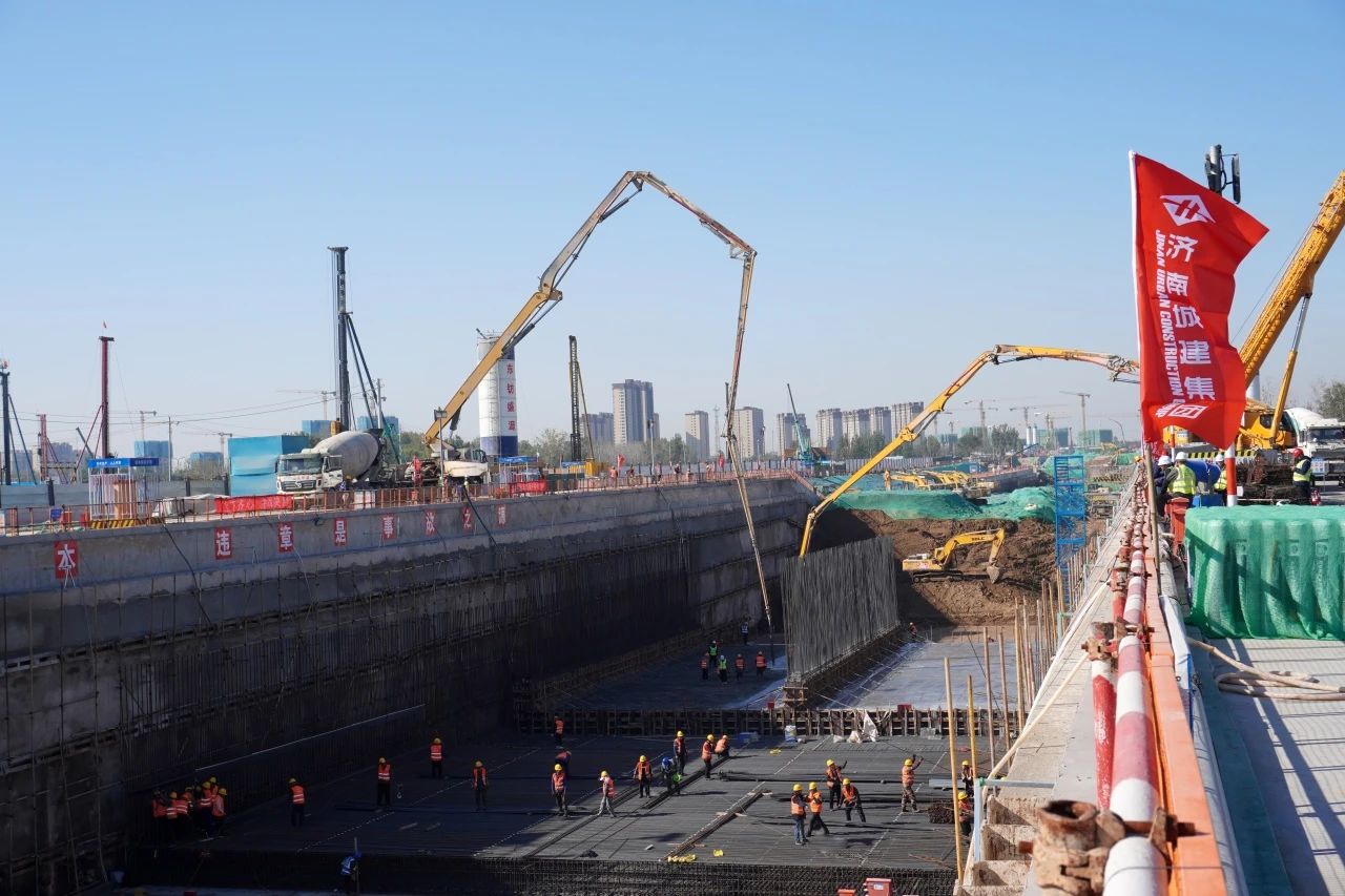11月6日,由建設集團受委托建設的濟南新舊動能轉換起步區黃河體育會展及科技智造園區基礎設施(黃河大道二期)工程迎來關鍵節點,濟南城建集團公司施工一標段完成首件底板混凝土澆筑,為全線首段完成底板混凝土澆筑的標段。